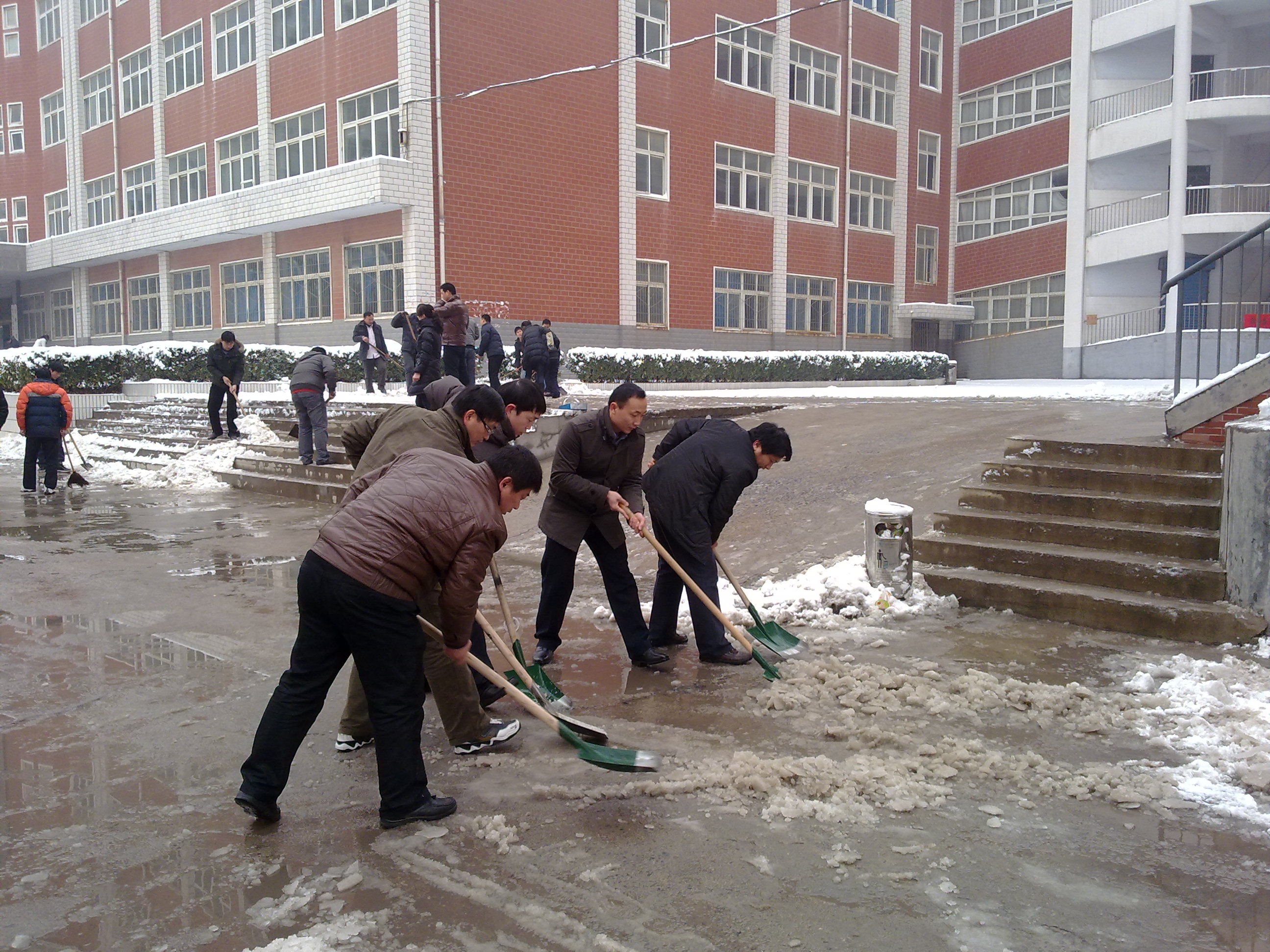 瑞雪纷飞,二月底的一场大雪有效地缓解了目前的旱情,但雪厚路滑也给全院师生的出行造成了不便;在这个时候,同学们趁着夜色为老师们扫清了上班的道路,老师们也在不影响同学们学习的上课时间,为同学们清理了教学楼周边的积雪;师生间的互相关爱也温暖了这姗姗来迟了的春天