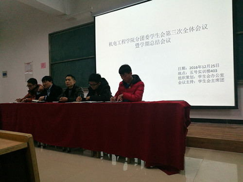 会议于晚上七点正式开始,首先是员工会的十二个部门分别对本学期的工作进行了总结。工作中遇到的问题、对问题的反思、反思后的总结,句句诚恳。之后夏老师就亲身感受提出了两点要求。员工会干事务必以身作则,宿舍管理务必加强。李书记提出了三个“有”——有自信,有目标,有德才。告诫员工会干事要做自信,有理想有德有才的实干人才。他还对明年的工作制定了以下目标:坚持一个中心——为人服务;实现一个目标——综合成绩在四个院系排名前二;锻炼一支团队——有德有才的员工会组织;建设一个平台——便利员工反馈的网络信息平台;营造一个氛围——有利于员工学习,促进校园和谐的氛围;建立一个完整的管理,教育体系。然后副主席张中栋和张韦林就以上发言进行了总结及工作报告,提出了一个创新工作的思想,学校所有工作都是在改革中发展的,要求各部门提交一份创新工作法策划书。最后员工会主席李硕进行了总结及本学期大家的收获、对更加美好明天的瞻望。