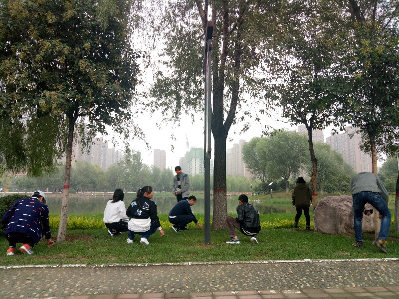 同学们从校门口出发,行走1.1千米才来到龙泉湖公园。首先,我们为这次活动拍摄了几张有纪念意义的大合照。为了能够更多的完成任务,大家积极地捡起地面上的包装袋,卫生纸,塑料袋等白色污染物,并丢到垃圾桶中。冒着小雨,和着歌声,此时的同学们们组成了一道美丽的风景线。当然,龙泉湖公园的风景美丽,也让同学们一饱眼福。