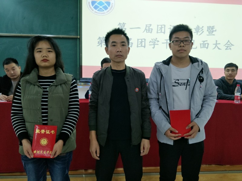 伴随着雄壮的团歌,此次表彰大会拉开了帷幕。首先,团委书记夏运生老师宣读了表彰文件,对李宝强等12名优秀学员进行表彰,同时授予优秀学员的荣誉称号,院领导为受表彰的优秀个人颁发证书。李宝强同学作为先进代表进行了发言,希望不辜负学院的栽培和教育,将这种优秀传递下去。