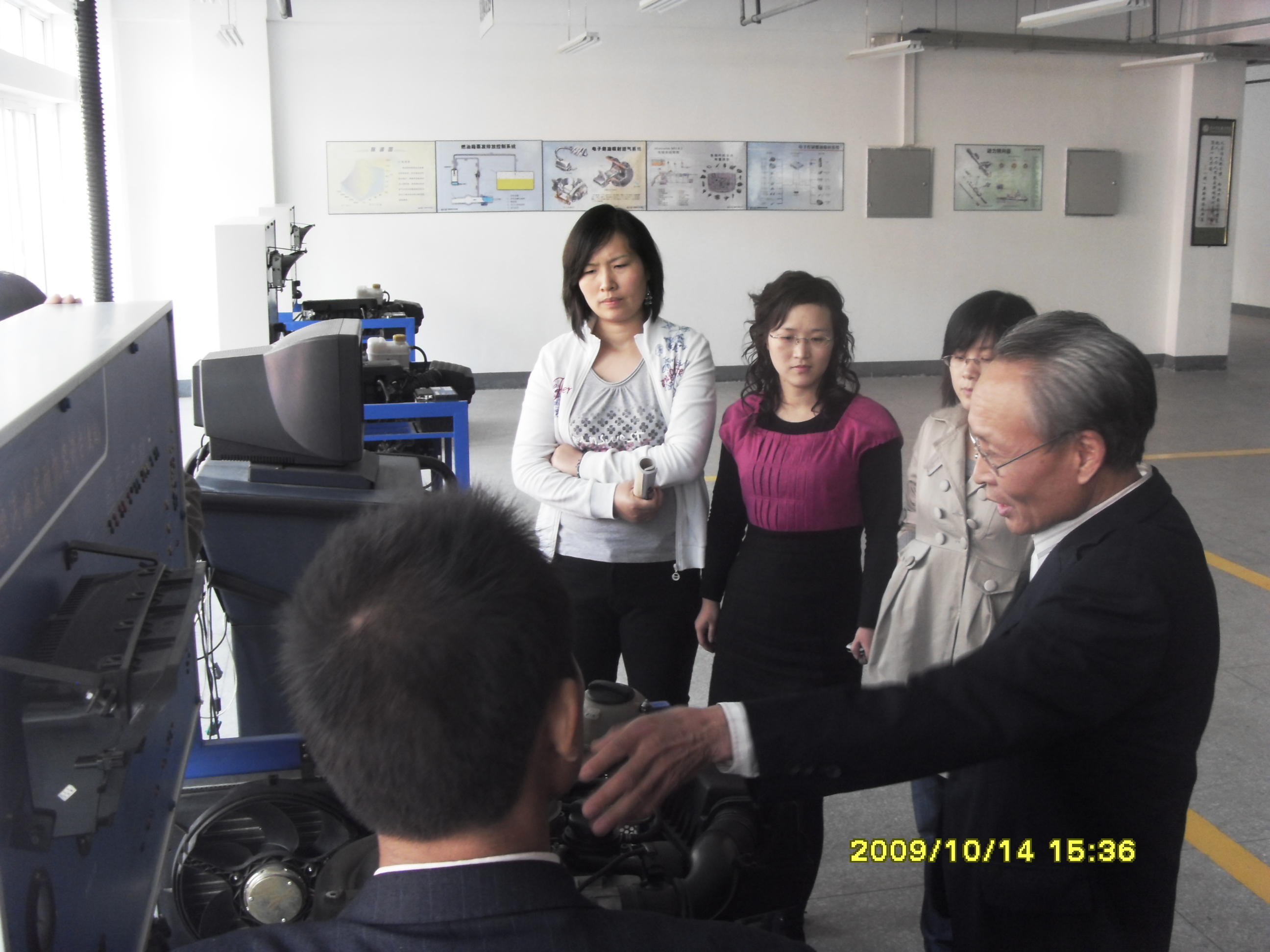 2009年10月14日我系组织全系理论教师到4#实训楼三楼进行教、学、做一体化课程改革交流活动。首先我系教师分别参观了电控发动机实验室、电控底盘实验室、车身电气电控实验室、电控示教板实验室,然后我系教师结合自己所教科目与实验室实践教师进行了充分的交流,就如何更好的上好一体化课程展开了讨论,为以后开展教、学、做一体化教学奠定了坚实的基础,本次交流活动达到了良好的效果。