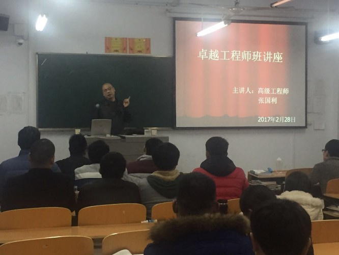 2月28日晚,武陟富耐克超硬材料公司的张国利高级工程师在汇知楼3204教室对卓越工程师班的40余名同学进行讲座,本次讲座由公司党总支书记赵海发同志主持,参与本次讲座的还有副书记李元应同志、田晓光老师、朱跃飞老师和吴文明老师。