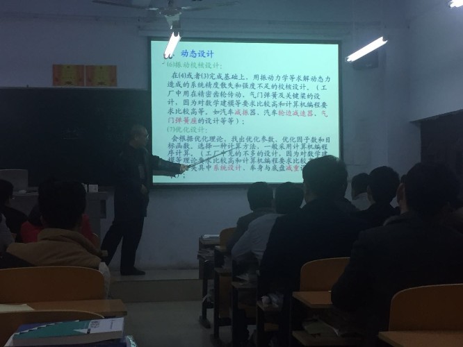 首先张老师以自己求学及工作经历开始讲座,介绍自己以前所带的卓越工程师班员工的当时的学习情况及现在的工作情况。接下来,张老师强调一个不懂相关的工艺、测量、装配、调试技术的工程师,无法进行真正的设计,至少不能完成优秀的设计。因此,他提出要成为卓越工程师所必备的两种设计思想条件:一是静态设计思想,它包括抄图设计、经验设计、经验+尺寸设计、强度校核设计到精准校核设计。二是动态设计思想,它包括震动校核设计、优化设计和仿真校核设计,并对各种设计思想做了说明。接下来,张老师以新产品的设计与开发进行举例说明,并将之前他所完成的项目为同学们讲解。最后,他从理论知识和实践知识两个方面对即将毕业的第一期卓越工程师班成员应掌握的知识提出要求,希望同学们在走出校园前珍惜学习的机会,利用课堂及实训机会多学习,多实践,好好做自己的毕业论文,争取为自己的大学学习生涯划一个圆满的句号。