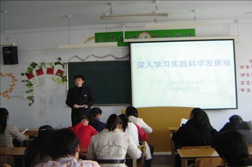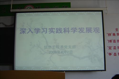 2009年4月7日下午信息工程系党支部在赵海发副主任的组织下,全体教职工及员工党员进行了第二次科学发展关的学习。本次学习主要分为两个环节:一是学习科学发展观重要论述摘编中的第一篇和第十二篇,二是学习省教育厅厅长蒋笃运的报告。