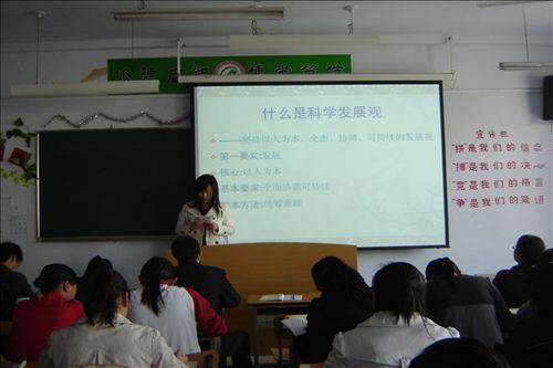 我系党支部书记赵海发首先做了重要发言,科学发展观是马克思主义中国化的最新成果,是当代发展的科学理论,是指导当前我国经济社会教育发展的指导思想,也是我们当前应对经济危机的理论指导;作为一名党员我们要联系实际深入学习和领会科学发展观,将科学发展观应用到我们的工作中,学习中,行动中。学习中我系全体党员都能够认真的听取报告,及时做好笔记,深入展开讨论。