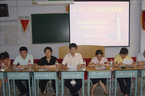 2009年6月4日下午我系党支部在4#204召开了专题民主生活会,以科学发展观为基础,就学院发展及个人自身存在的问题进行剖析,并展开深入讨论。