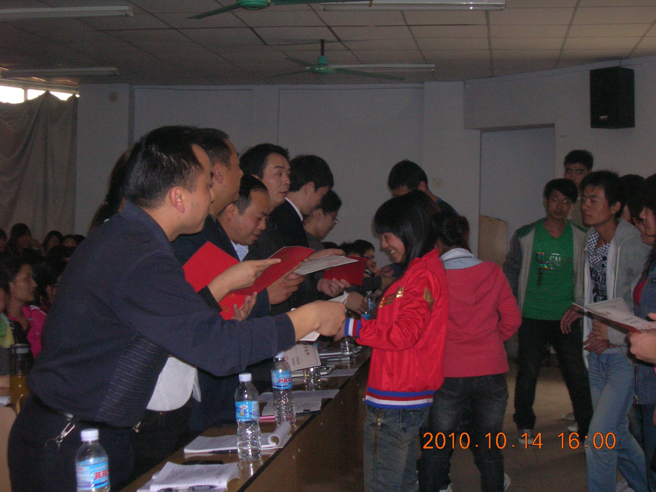 会上,赵海发主任从顶岗实习的意义等方面介绍了相关情况。通过同学们身边的实例,与同学们分享了在社会实践中的技巧和人生道理。希望同学们“处处留心皆学问”,做好人生规划,适应社会,做一个有思想的人。同时为我们分析了今年的“多层次、立体化”的就业形势,要求同学们在今后的就业中不仅要不断提高专业知识技能,又要不断丰富自己的专业特长,做一个社会所需要的一专多能型人才。教务处副处长薛川宣传读了“关于牛永新等56位同学表彰的决定”,对同学们在实习中的突出表现给予充分肯定与赞扬。