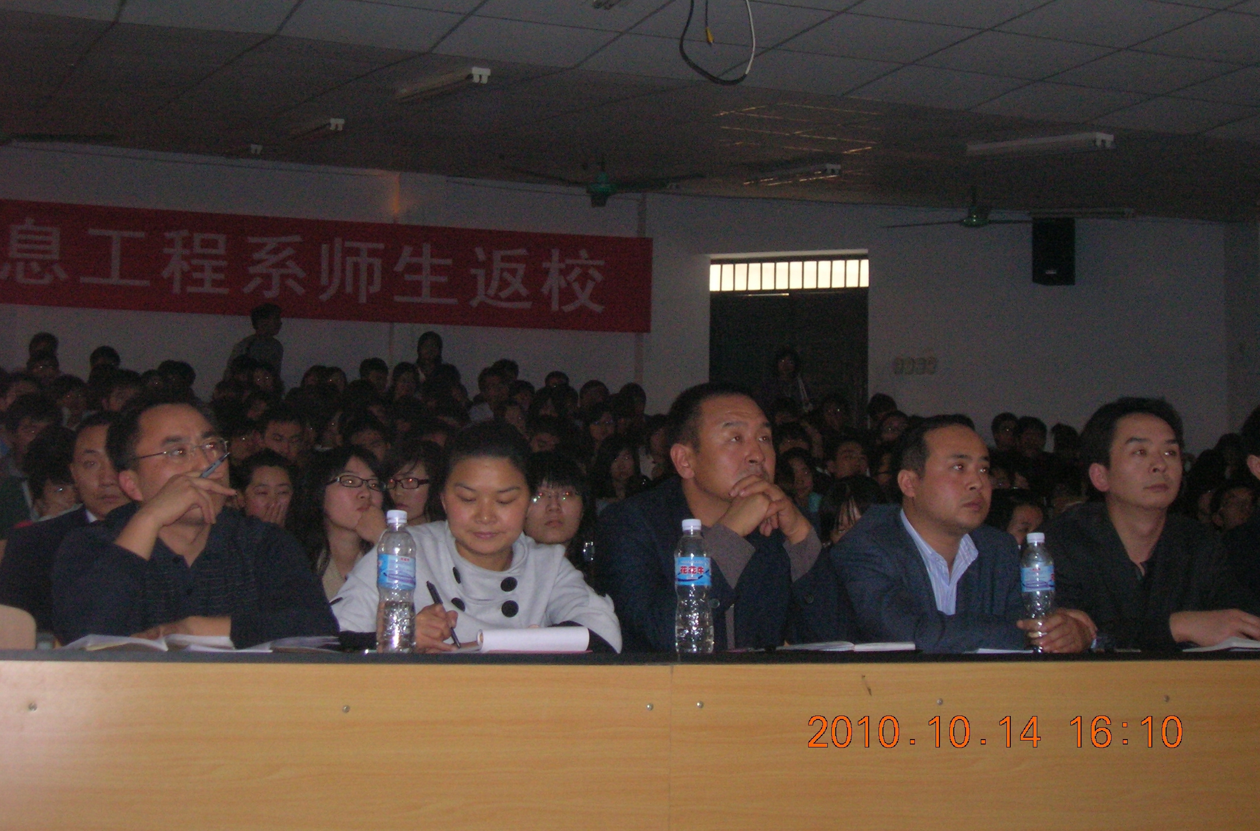 10月14日,信息工程系2008级顶岗实习表彰暨毕业设计工作会议在二号教学楼515教室召开。出席此次会议的有教务处副处长薛川、人才招聘办公室处长仇正锋、教学督导室主任刘会学、信息工程系主任赵海发,信息工程系教师代表以及2008级顶岗实习全体员工。