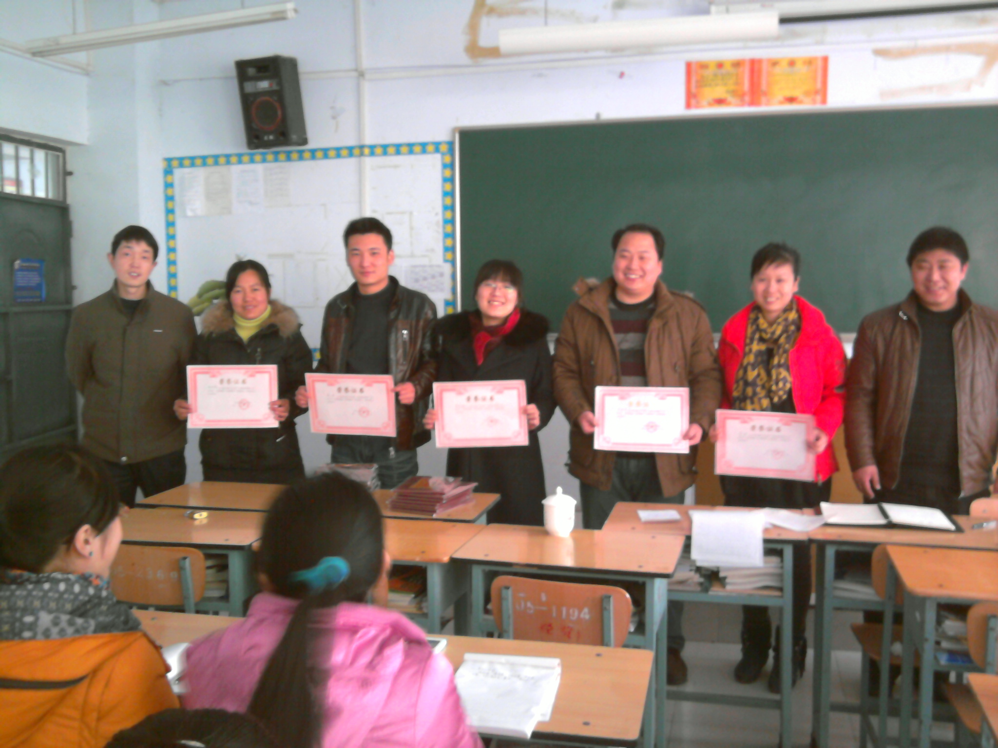 最后,支部书记赵海发同志和教学主任陈海生同志为上年度获奖的“姜海等六名”优秀教师颁奖,并合影留念,本次学习在大家热烈的掌声中结束。