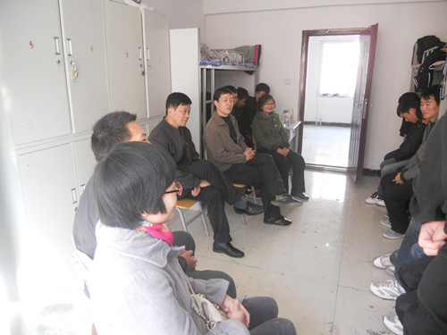 同学们得知学校老师们从学校来看望他们,都非常高兴。尽管大家都是下了夜班刚刚入睡,还是很兴奋地从床上起来下楼迎接前来看望他们的领导和老师们。赵主任一行人走进每一间宿舍关心同学们的冷暖,亲切地询问了同学们在实习期间的工作情况、生活状况。同学们非常激动地讲述自己的工作流程,汇报自己的工作感想。最后,督导室的武锡环教授发自肺俯地给同学们交谈,他拿自身年轻时的生活、工作经历,平常而感人的小事来教育我们的员工:在实习期间,眼光要放远,实习的目的不只是为了挣钱,而要把这个实习场所当作提高的过程,从各个方面锻炼自己,磨炼自己,学会技能的同时,还要学会处理人际关系;要学会适应各个岗位的工作,能站在各种角度去感悟生活,为自己以后走上工作岗位奠定基础,也为自己的未来制定一个远大的目标!武教授的真知灼见,使同学们响起了热烈的掌声,同学们一个个都觉得此次实习,收获很大,也表示将来以此次实习为新起点、会更好地投入到学习和工作中去!