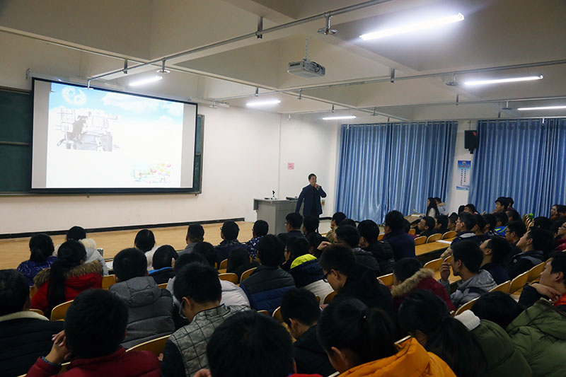 讲座开始,赵书记用的诙谐幽默的语言使讲座在轻松愉快的氛围中拉开了序幕。他首先通过胶囊列车、智能门锁、智能家具和智能机器人等图片引出本次讲座的主题;以域名、服务器、网页文件和搜索引擎来说明互联网在中国的发展以及用人人时代和一系列数据分析来介绍互联网+。接着,以蒸汽技术革命、电力技术革命、计算机与空间技术革命和信息物理融合技术革命来介绍工业4.0的内涵,通过与德国工业4.0进行对比来说明我国的差距。赵书记又讲解了“中国制造2025”及其核心内容与如何贯彻落实等内容,并介绍了我国所制定的“创新驱动、质量为先、绿色发展、结构优先、人才为本”的五条方针;“国家制造业创新中心建设工程、智能制造工程、工业强基工程、绿色制造工程、高端装备创新工程”的五大工程和“先进轨道交通设备、节能与新能源汽车、电力装备、航空航天装备”等十个重点领域。最后,赵书记强调实施好中国制造2025,推进“互联网+”制造,要以智能制造为主攻方向,以工业互联网为重要支撑,推动制造业数字化、网络化、智能化,实现提质增效、转型升级。