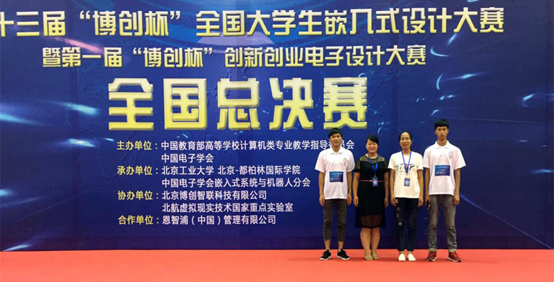 2017年7月15日,第十三届“博创杯”全国老员工嵌入式设计大赛在北京工业大学举办,全国共计500多支队伍参加此次大赛,100多支队伍成功晋级参加国赛,太阳集团tyc9728李小伟、朱永琴老师带队参加,经过紧张的比赛,太阳成集团参赛队伍项目“基于ARM的多方式测控系统”获得全国三等奖。