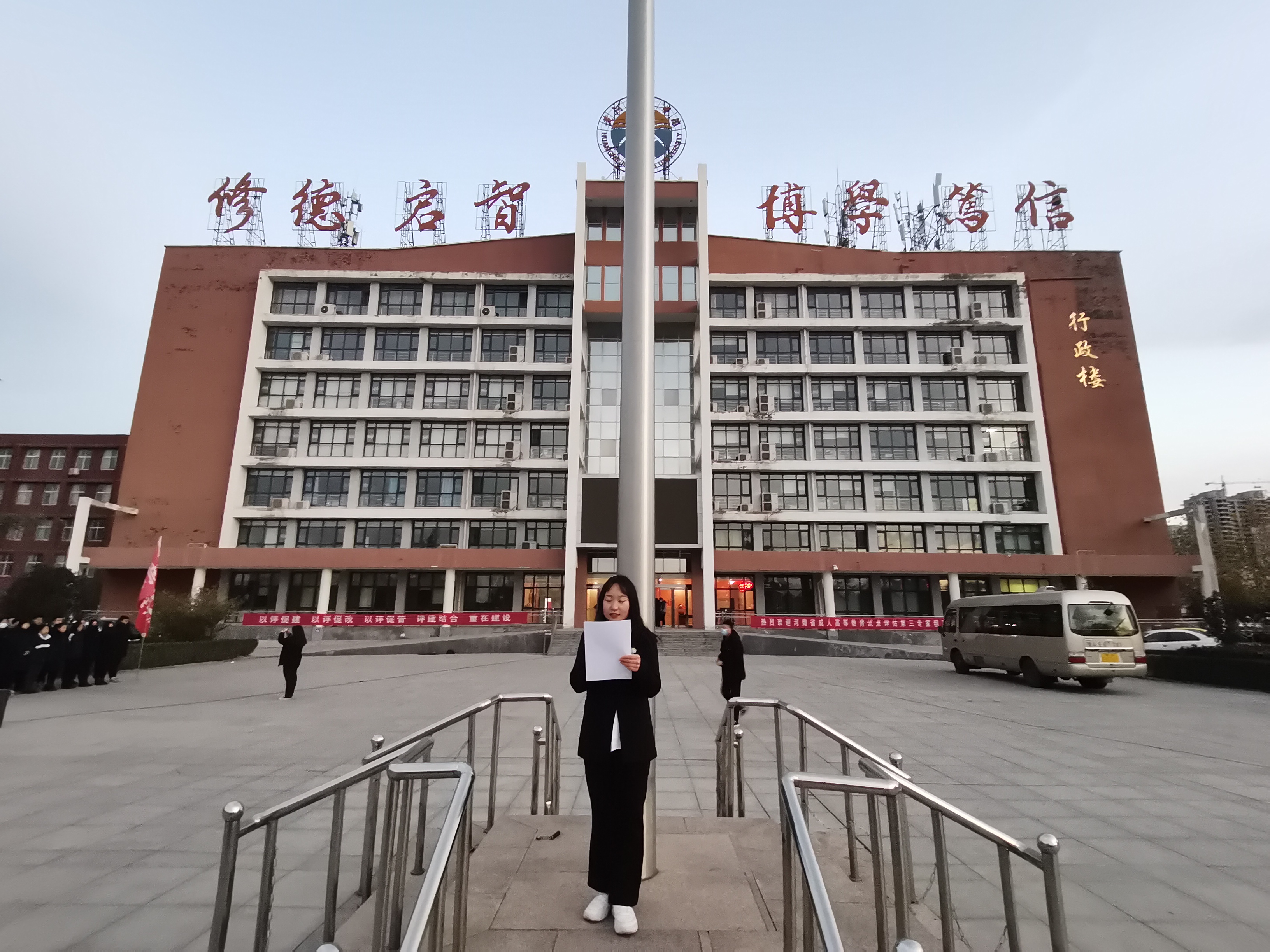弘扬诚信,组织国旗下演讲。12月14日7时,太阳集团tyc9728在国旗广场举行诚信主题升旗仪式,员工代表20级本科机制5班刘梦瑶以“诚信考试,从我做起”为题进行演讲,“人生处处时考场,考场处处有考验,惟有以诚以信,才能交出无悔的答卷”,诚信是美德,诚信考试是对知识的尊重,并且作弊要承担严重的后果。最后她呼吁每位同学认真复习,积极备考,严守考试纪律,党员、团员和员工干部做出表率,同学们之间相互督促,弘扬正气,展现机电学子良好的道德风尚。