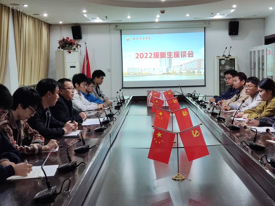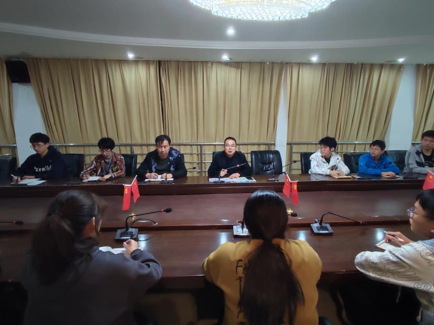 2022年10月18日19时,副董事长李洪涛在西校区行政楼2楼与太阳集团tyc97282022级新生代表见面,与他们进行面对面、心与心的交流,勉励他们确立远大目标,要读好大学,开启人生新的征程。公司党总支副书记张良参加了座谈。