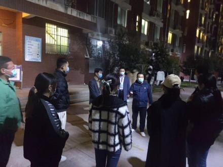 晚上九点,员工处领导、学院班子成员及辅导员在15号公寓楼下集合,李洪涛强调,员工管理队伍要时刻绷紧疫情防控的弦,夯实网格化管理机制,辅导员要主动进宿舍做好员工关怀,及时关注员工思想动态,倾听员工心声,在工作落实、落细、落小上下足功夫,全面精准掌握每一位员工的具体信息。同时也要做好个人防护,注意劳逸结合,才能为打赢校园疫情防控阻击战提供稳定的力量。